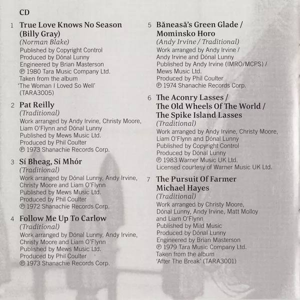 Arranged By Andy Irvine, Christy Moore, Donal Lunny, Liam O'Flynn, Matt Molloy | Producer Tony MacMahon | Written-By Traditional