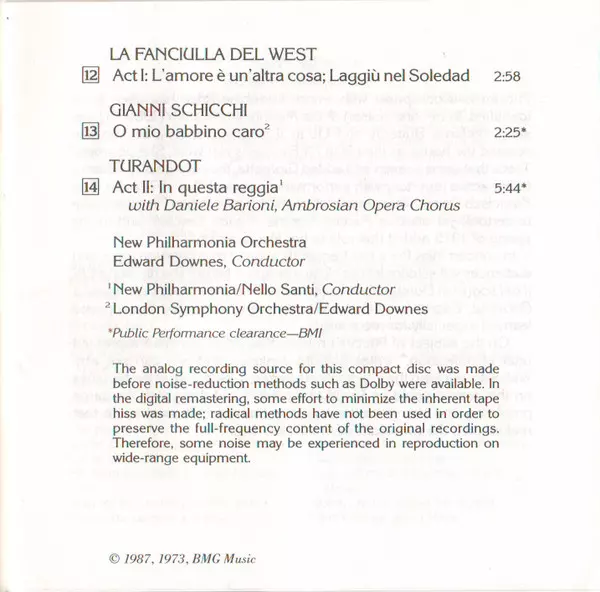 | Artista | Giacomo Puccini | New Philharmonia Orchestra | Leontyne Price | Edward Downes |
