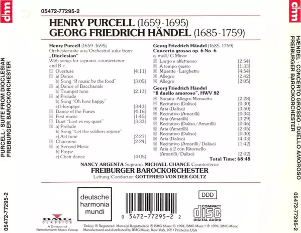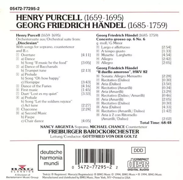 Dioclesian Suite / Concerto Grosso Op. 6 No. 6; Il Duello Amoroso - CD