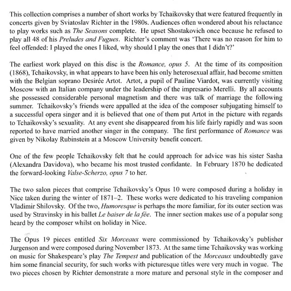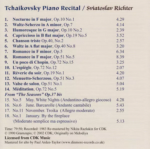 | Artista | Pyotr Ilyich Tchaikovsky | Sviatoslav Richter |