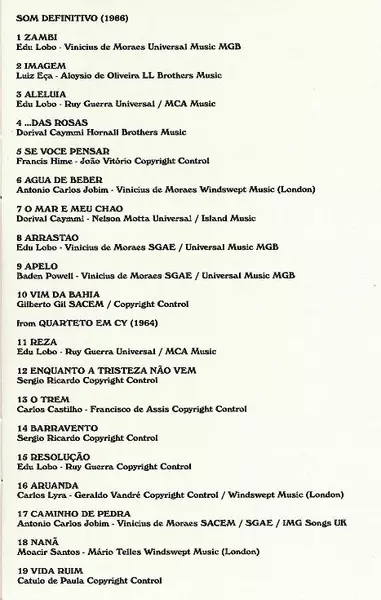 | 10 | Quarteto Em Cy, Tamba Trio: Vim Da Bahia | ||