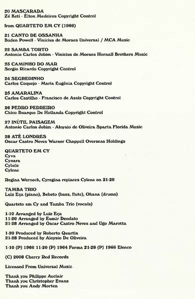 | 6 | Quarteto Em Cy, Tamba Trio: Agua De Beber | ||