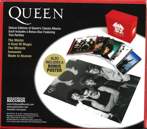 Queen: Queen 40 LTD versión en 10CD/Caja en de edición limitada remasterizado edición. Esta edición en concreto se lanzó en EE.UU. en la editorial Hollywood Records el día 5. junio 2012. Álbum abarca todos los géneros Rock, Progressive rock, Pop Rock, Hard Rock y Classic Rock. 2011 Digital Remaster Limited Edition.