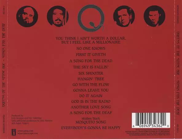 Three Steps to Absolute Greatness: former KYUSS members Josh Homme and Nick Oliveri present their third full-length studio album (their second on Interscope), "Songs for the Deaf," the rock album of the year that critics and fans agree on. There is no pure metal, no retro rock, no pure desert rock on offer here - "Songs for the Deaf" is more of ...