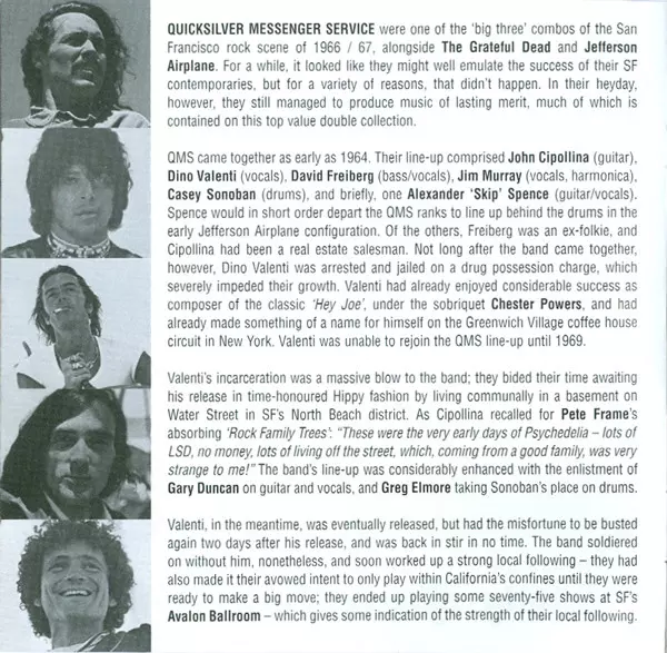 Quicksilver Messenger Service was an American psychedelic rock band formed in 1965 in San Francisco. The original lineup included guitarist John Cipollina, guitarist Gary Duncan, drummer Greg Elmore, and bassist David Freiberg. They were part of the early wave of the San Francisco ...