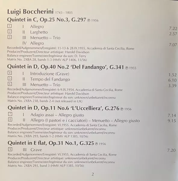 | Artista | Luigi Boccherini | Quintetto Boccherini |