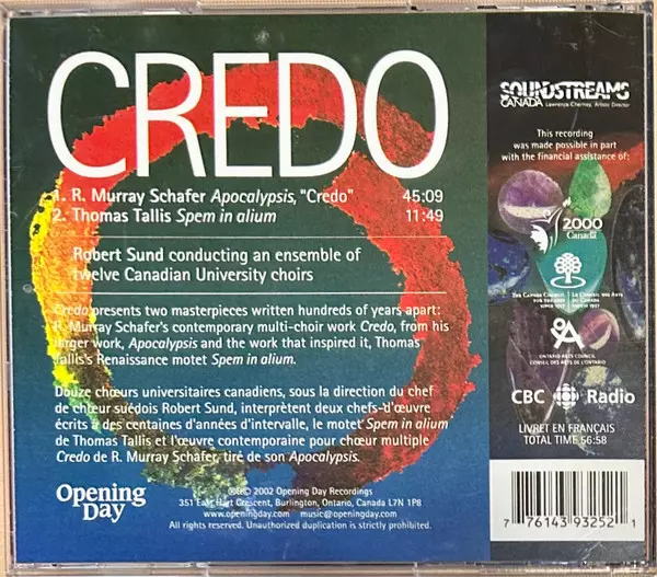 | Artista | Thomas Tallis | Robert Sund | R. Murray Schafer |