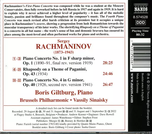 | Título | Piano Concertos Nos. 1 & 4 / Rhapsody On A Theme Of Paganini |