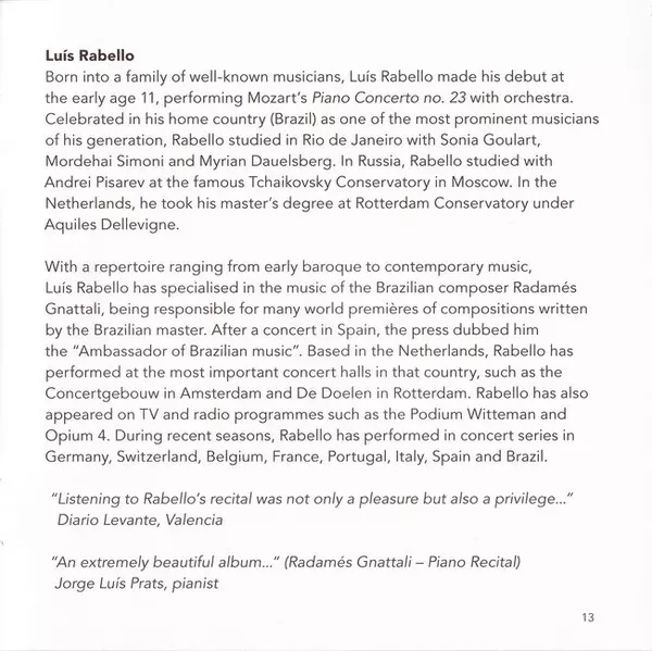 | Artista | Radamés Gnattali | Luís Rabello | Floor Braam |