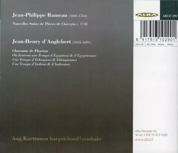 | Artista | Jean-Philippe Rameau | Jean-Henry d'Anglebert | Assi Karttunen |