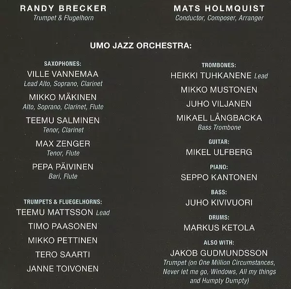 | Artista | Randy Brecker | Umo Jazz Orchestra | Mats Holmquist |