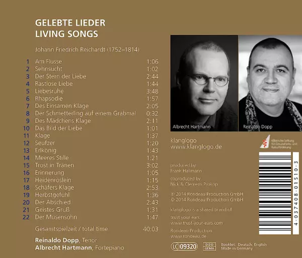 | Artista | Johann Friedrich Reichardt | Reinaldo Dopp | Albrecht Hartmann |