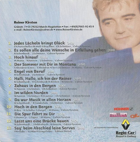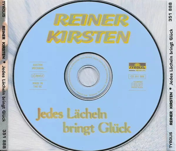 Reiner Kirsten: Jedes Lächeln Bringt Glück versión en CD en estándar edición. Esta edición en concreto se lanzó en Alemania, Austria y Suiza en la editorial Tyrolis Music el día 16. julio 2001. Álbum abarca todos los géneros Pop, Folk, World, & Country, Schlager y Volksmusik.