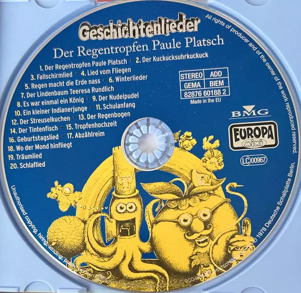 | Título | Geschichtenlieder - Der Regentropfen Paule Platsch |