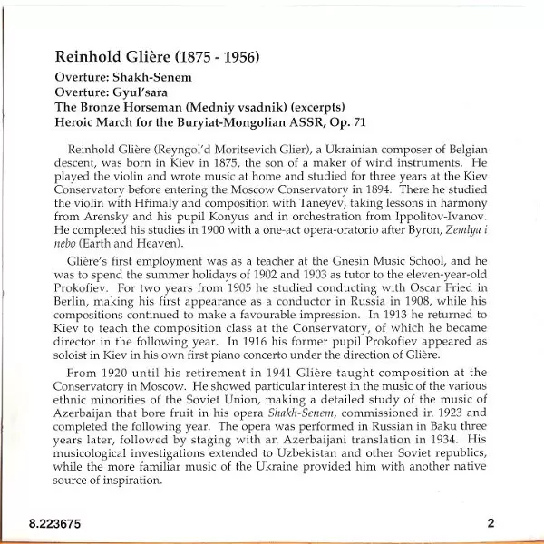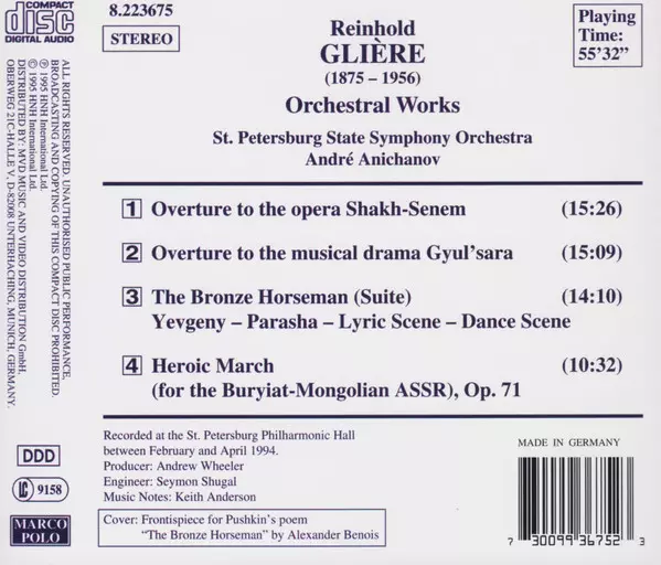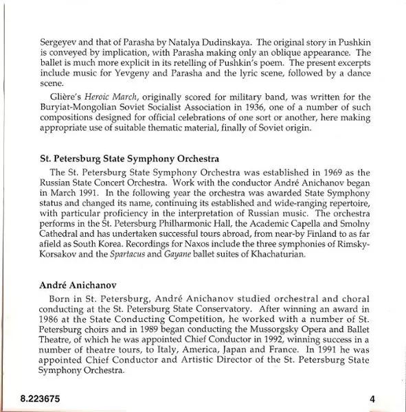 | Artista | Reinhold Gliere | André Anichanov | St. Petersburg State Orchestra |