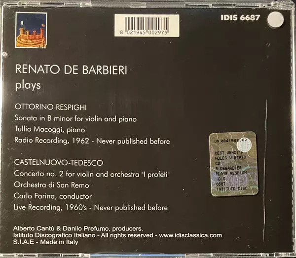 | Artista | Ottorino Respighi | Mario Castelnuovo Tedesco | Renato De Barbieri |