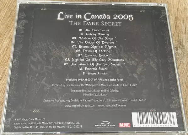 | Título | Live in Canada 2005 - The Dark Secret |