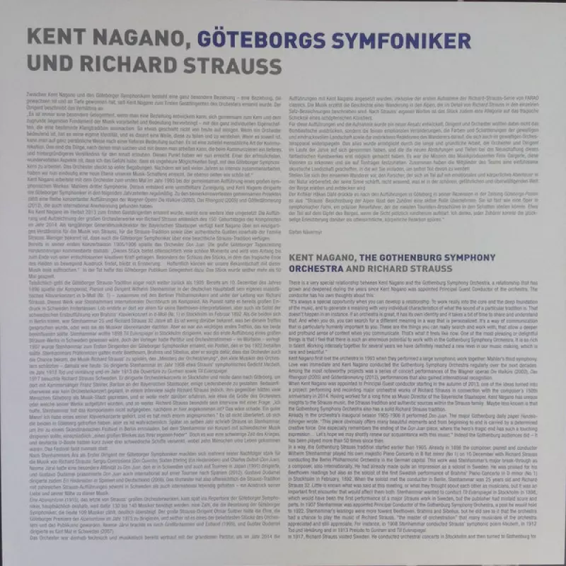 | Artista | Richard Strauss | Kent Nagano | Göteborgs Symfoniker |