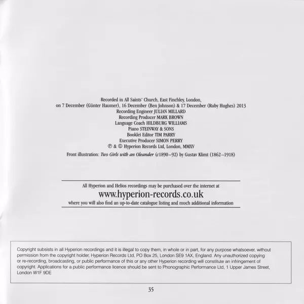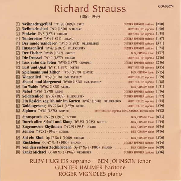 | Artista | Richard Strauss | Ruby Hughes | Roger Vignoles | Ben Johnson | Günter Haumer |