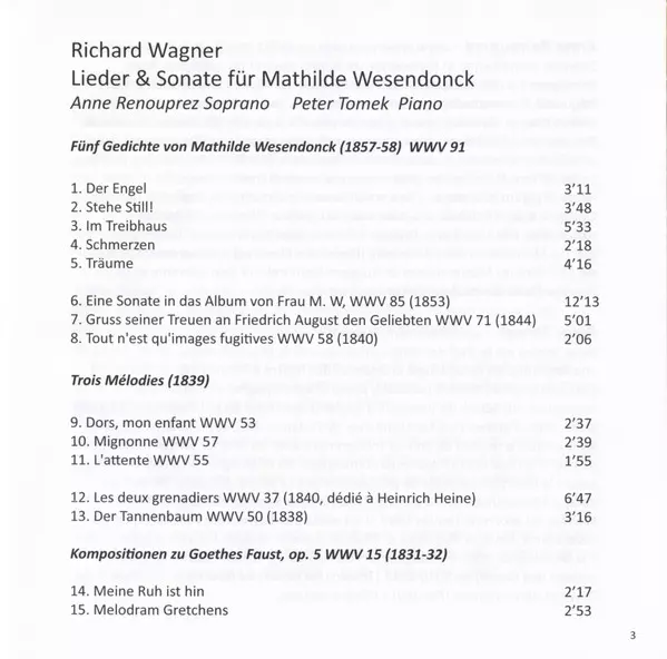 Artista | Richard Wagner | Anne Renouprez | Peter Tomek |