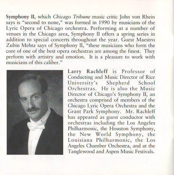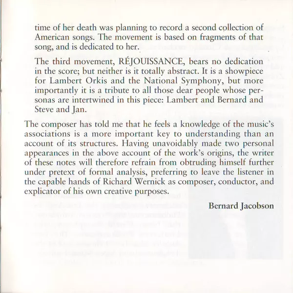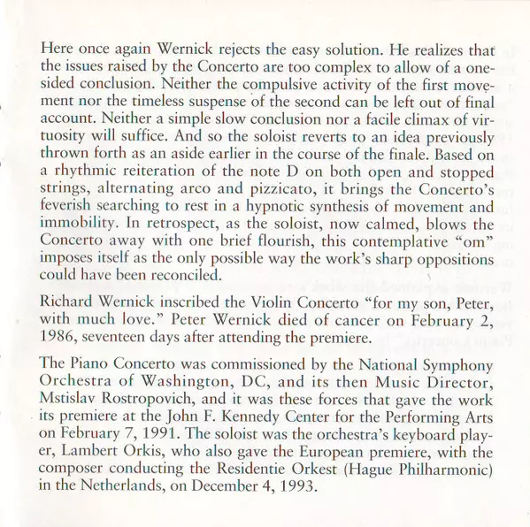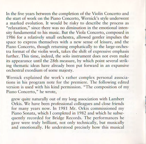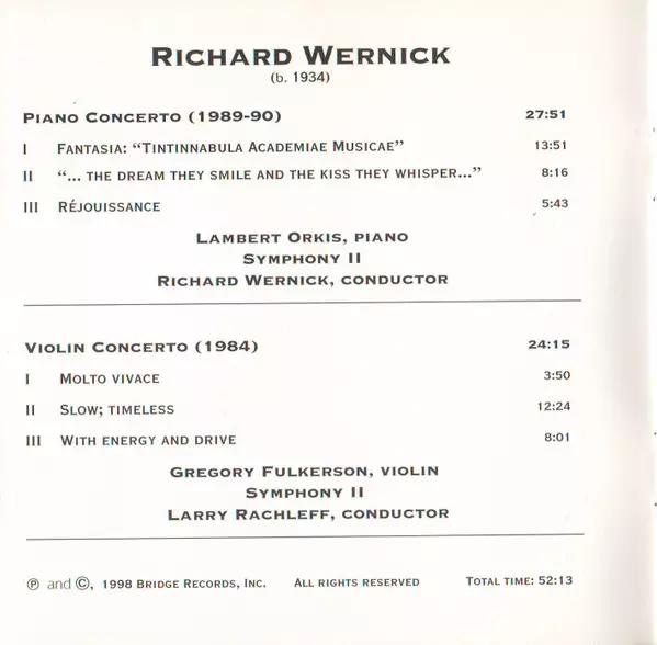 | Conductor Richard Wernick | Orchestra Symphony II | Piano Lambert Orkis | ||