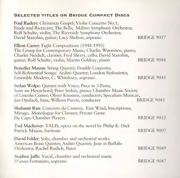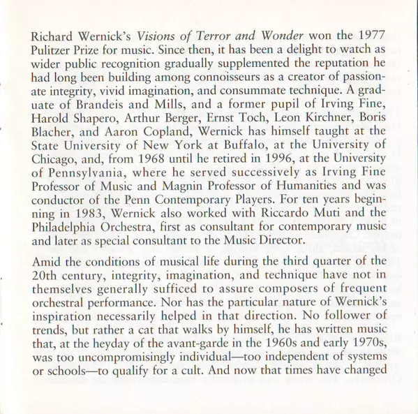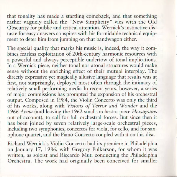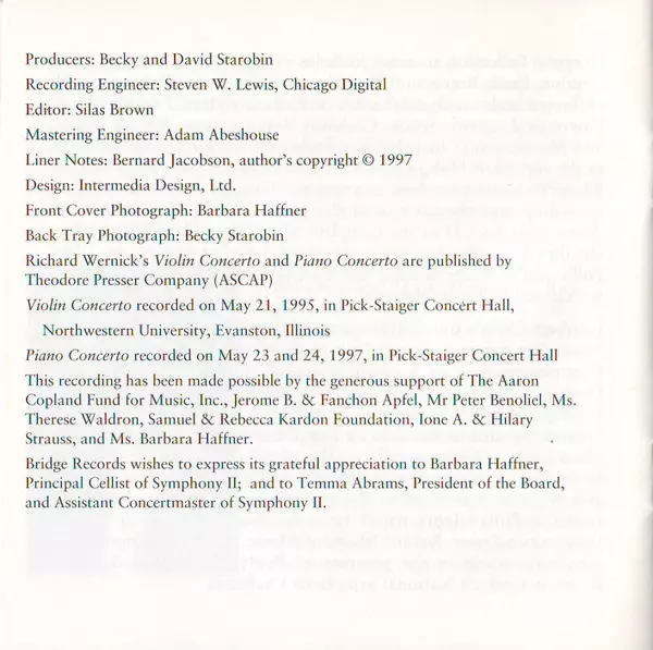 | Artista | Lambert Orkis | Gregory Fulkerson | Richard Wernick | Symphony II |