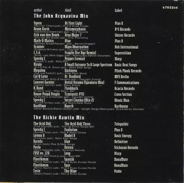 | Artista | Richie Hawtin | John Acquaviva |