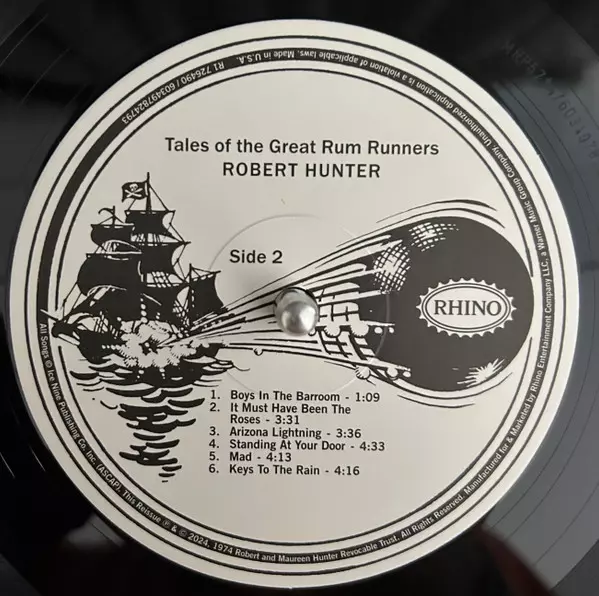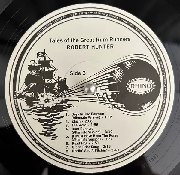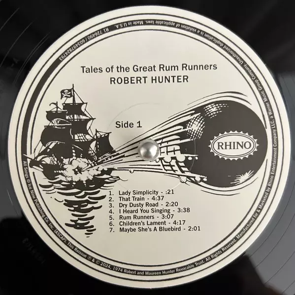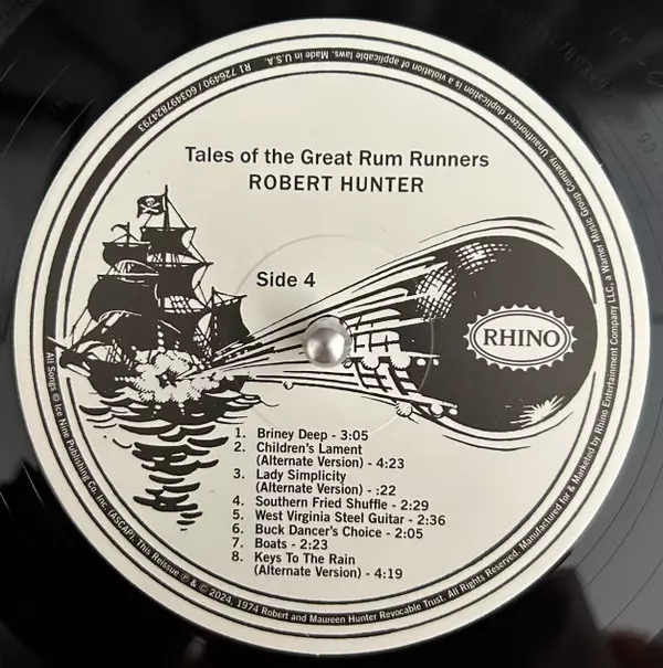 Robert Hunter: Tales Of The Great Rum Runners DLX versión en vinilo 2LP en deluxe remasterizado edición. Esta edición en concreto se lanzó en EE.UU. en la editorial Rhino Records (2) el día 7. junio 2024. Álbum abarca todos los géneros Rock, Folk, World, & Country, Folk, Folk Rock y Psychedelic rock.