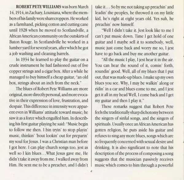 | Artista | Robert Pete Williams | Hogman Maxey | Guitar Welch |