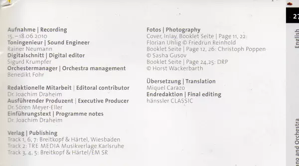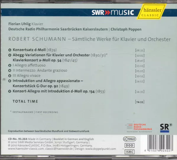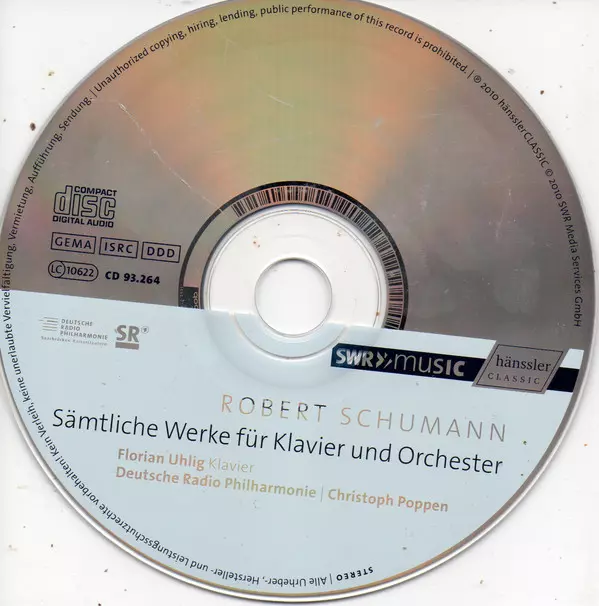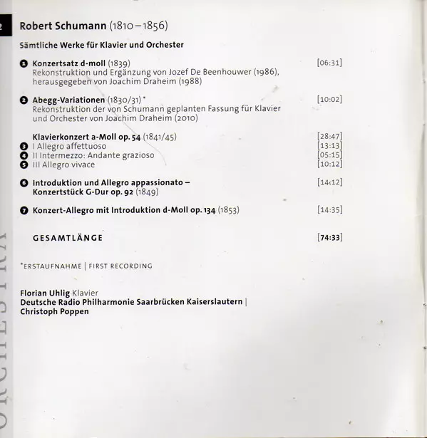 | Artista | Robert Schumann | Deutsche Radio Philharmonie Saarbrücken Kaiserslautern | Christoph Poppen | Florian Uhlig |