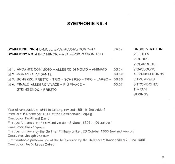 | Symphonie Nr. 4 D-moll, Erstfassung von 1841 | 24:57 min | |