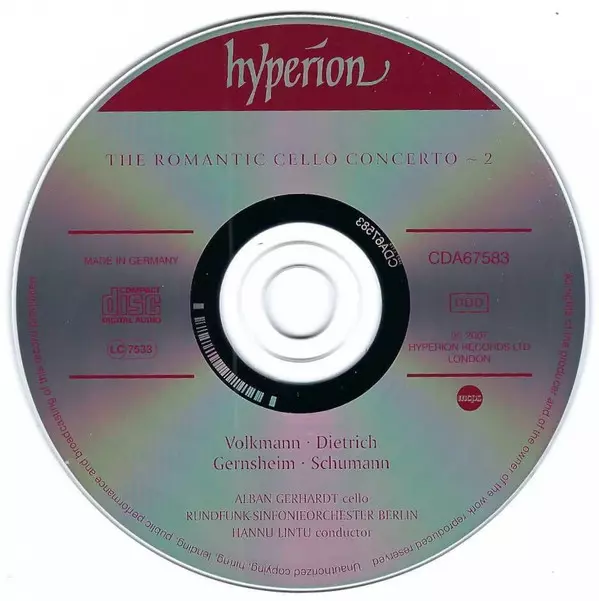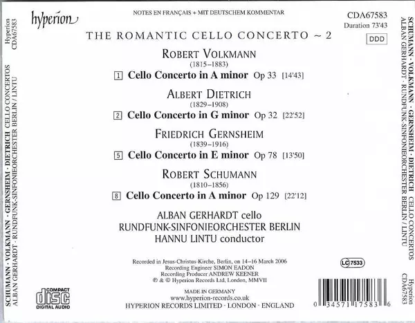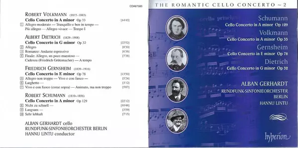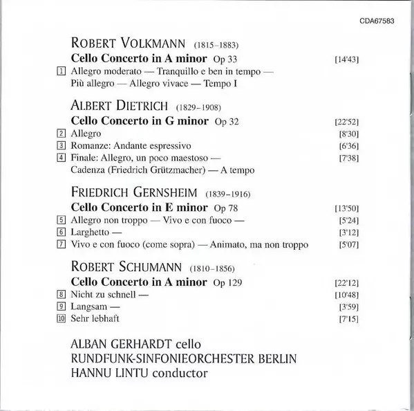 | Artista | Robert Schumann | Rundfunk-Sinfonieorchester Berlin | Alban Gerhardt | Hannu Lintu | Albert Dietrich | Robert Volkmann | Friedrich Gernsheim |