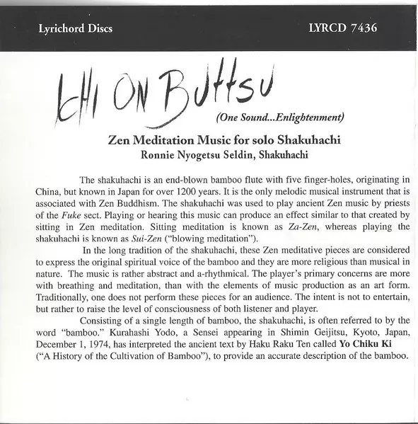 | Título | Ichi On Buttsu (One Sound...Enlightenment) - Zen Meditation Music For Solo Shakuhachi |