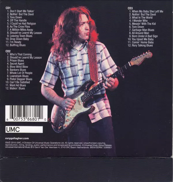 Rory Gallagher: Blues DLX versión en 3CD en deluxe edición. Esta edición en concreto se lanzó en Europa en la editorial Chess en colaboración con UMC el día 31. mayo 2019.