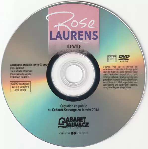 Rose Laurens: Rose Laurens Au Cabaret Sauvage 2016 versión en DVD en estándar edición. Esta edición en concreto se lanzó en Francia en la editorial Marianne Mélodie el día 16. febrero 2024. Álbum puede clasificarse como género Pop.