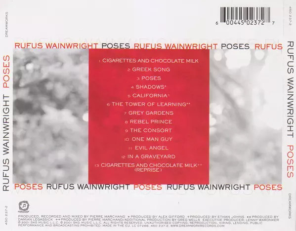 Rufus Wainwright: Poses versión en CD en estándar edición. Esta edición en concreto se lanzó en Europa en la editorial Dreamworks Records el día 11. junio 2001. Álbum abarca todos los géneros Rock, Pop y Pop Rock.