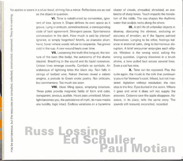 | Artista | Paul Motian | Russ Lossing | Ed Schuller |