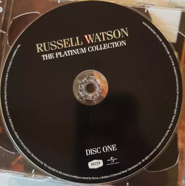 Russell Watson: The Platinum Collection versión en 2CD en estándar edición. Esta edición en concreto se lanzó en Reino Unido en la editorial Decca del año 2010. Álbum abarca todos los géneros Pop, Música clásica, Vocal y Ópera.
