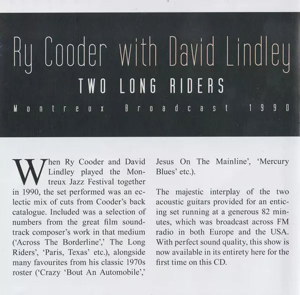 | Título | Two Long Riders: Montreux Broadcast 1990 |