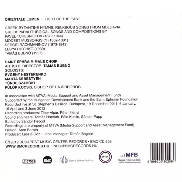 | Artista | Evgeny Nesterenko | Saint Ephraim Male Choir | Tamás Bubnó | Márta Sebestyén |