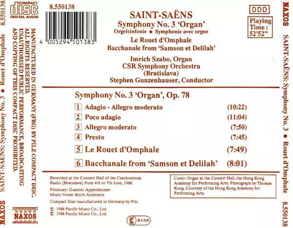 CD Camille Saint-Saëns: Symphony No. 3 'Organ', Op. 78 • Le Rouet D'Omphale • Bacchanale From 'Samson Et Delilah'