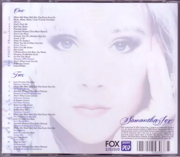 Samantha Fox: Just One Night DLX versión en 2CD en remasterizado deluxe edición. Esta edición en concreto se lanzó en Reino Unido en la editorial Cherry Pop en colaboración con Fox 2000 el día 3. julio 2012.