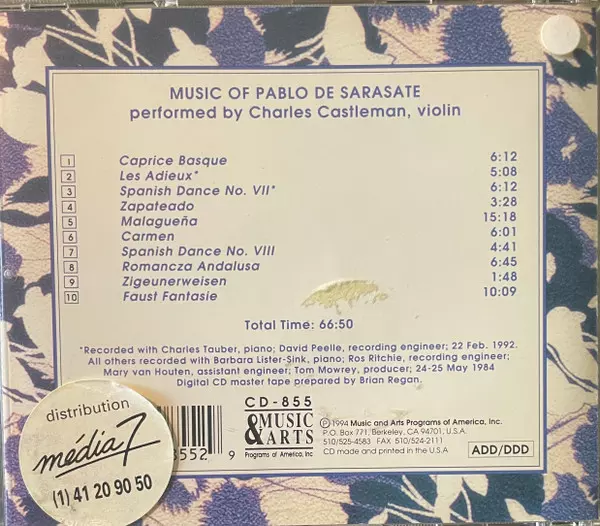| Artista | Pablo De Sarasate | Charles Castleman |