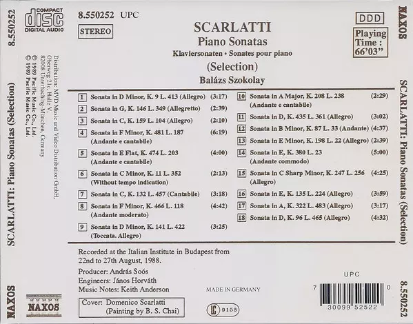 | Artista | Domenico Scarlatti | Balázs Szokolay |