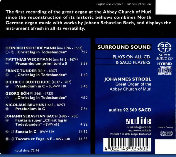 | Artista | Johann Sebastian Bach | Dieterich Buxtehude | Matthias Weckmann | Georg Böhm | Heinrich Scheidemann | Franz Tunder | Nikolaus Bruhns | Johannes Strobl |