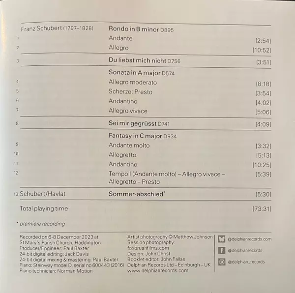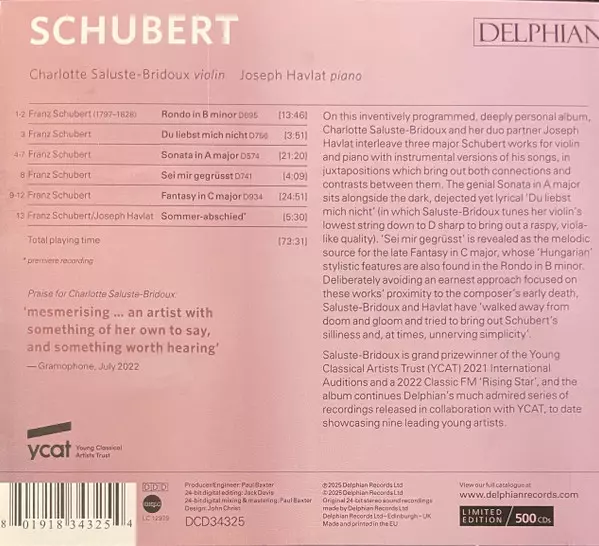 | Artista | Franz Schubert | Joseph Havlat | Charlotte Saluste-Bridoux |