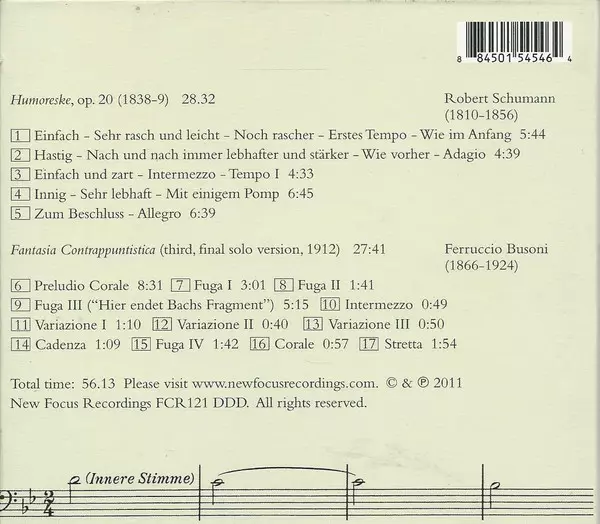 | Artista | Robert Schumann | Ferruccio Busoni | Jacob Greenberg |