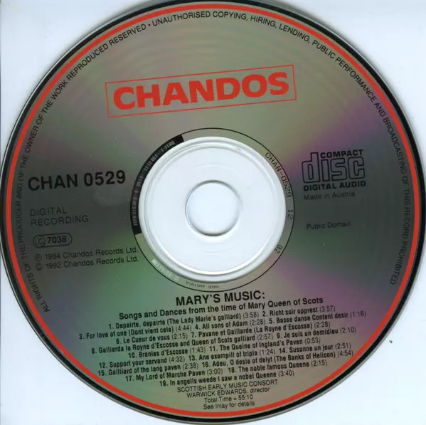 CD Scottish Early Music Consort: Mary's Music (Songs And Dances From The Time Of Mary Queen Of Scots)