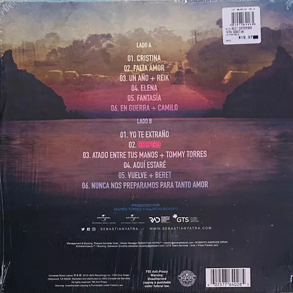 Sebastián Yatra: Fantasía versión en vinilo LP en estándar edición. Esta edición en concreto se lanzó en EE.UU. en la editorial Universal Music Latino el día 7. junio 2019. Álbum abarca todos los géneros Pop, Música latina, Vocal y Reggaeton.