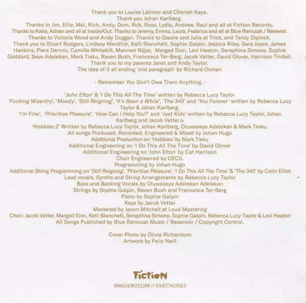 | Editorial | Fiction Records |